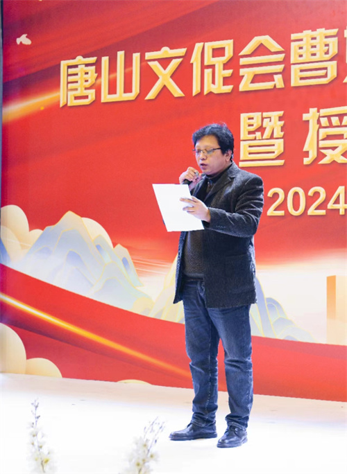 唐山文促会常务副秘书长庄中健首先宣读了“唐山市文化艺术交流促进会关于组建曹妃甸分会的通知”;随后,唐山文促会主席王德江为曹妃甸分会授牌;曹妃甸分会常务副会长李沅锦介绍了分会相关情况以及未来发展规划;唐山文促会常务副主席刘建国,曹妃甸区文化广电和旅游局书记齐瑞东相继发表了热情洋溢的讲话,并对曹妃甸分会的成立表示祝贺,希望分会广大文艺工作者,要以旺盛的创作激情去讴歌新时代,用辛勤的汗水浇灌出曹妃甸绚丽的文艺之花,为曹妃甸区公益文化事业的大繁荣大发展做出贡献。